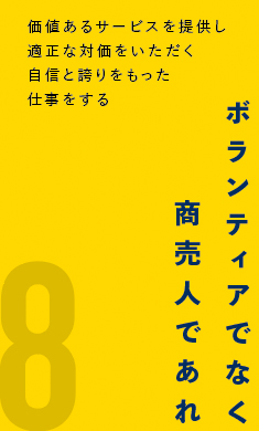 キレイな仕事は、キレイな心が備わっていてこそ実現する。お互いに陰口や噂話は止め、お客様に向き合おう。清潔で、美しい心で接し合おう。