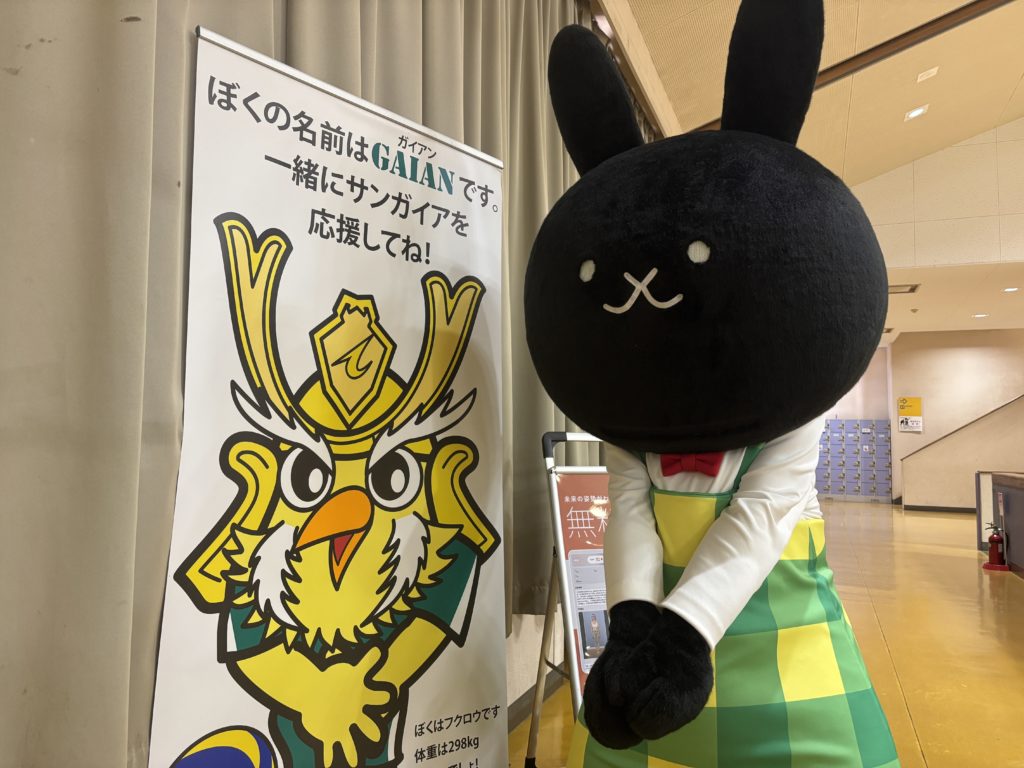 クリーニング専科ブースではけん玉5回チャレンジ、マスコットキャラクターの黒田ウーサーもコンコースや選手入場、MIP表彰を体験させていただきました。